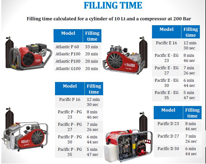NARDI PACIFIC D — Linha diesel de compressores de ar respirável (230–320 L/min)